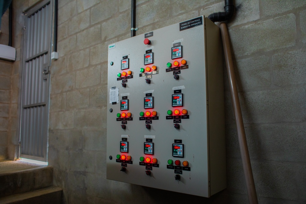 A Casa de Máquinas tem como principal objetivo armazenar a solução nutritiva e proteger os reservatórios da ação do tempo. Neste espaço, estão os reservatórios, as bombas e painéis de controle para comandar a entrada e a saída da solução.