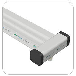 Sistema exclusivo da Hidrogood, com perfis móveis, onde se faz a colheita, higienização e replante individualmente em cada barra de perfil, e tudo isso num mesmo local.