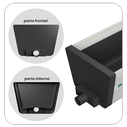 Garante encaixe perfeito para as calhas, evitando vazamentos e recolhendo a solução para ser reaproveitada, gerando economia para o produtor.