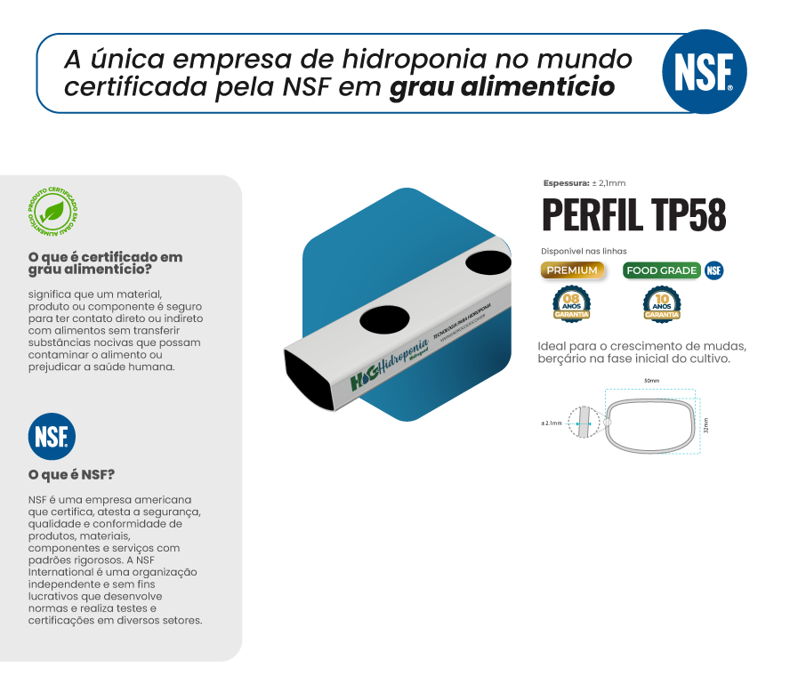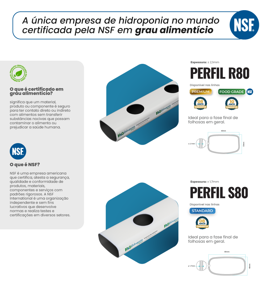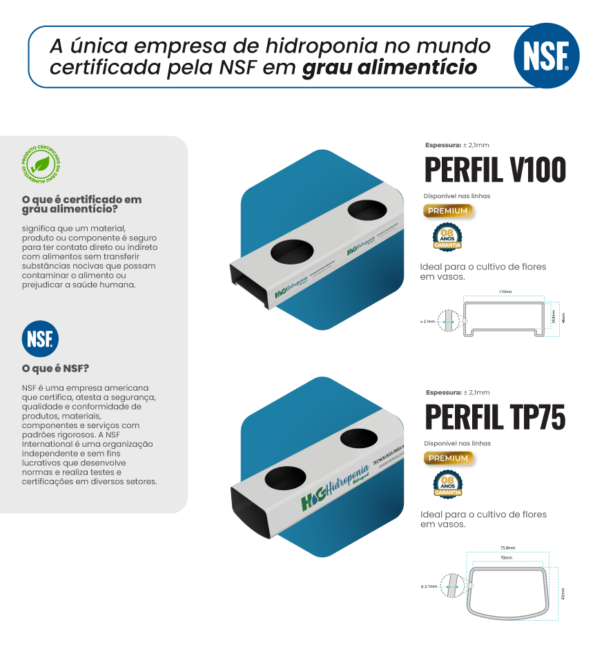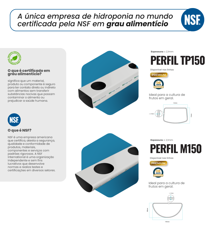 Desde 1996, desenvolvemos tecnologias exclusivas como o sistema HPM, os primeiros perfis em dupla camada e polipropileno do mercado, além de sermos a primeira empresa de hidroponia com certificação NSF.