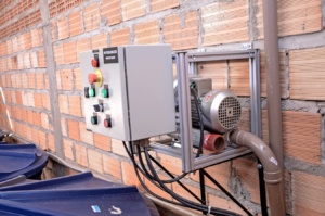 A bomba para levar a solução às bancadas, trabalha normalmente “afogada”, ou seja, num nível inferior ao da solução (do lado de fora do reservatório), para evitar a entrada de ar no sistema. As bombas submersas em modo geral não são recomendadas porque a carcaça externa sofrerá muita corrosão, já que a solução nutritiva é uma solução salina e também devido a vibração da bomba, isso pode rachar o reservatório. Além disso, a bomba submersa contém peças metálicas galvanizadas (zincagem) que podem aumentar o índice de Zinco na solução e consequentemente intoxicar as plantas.