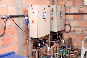 Outra consideração é quanto ao uso de 2 depósitos como uma medida de prevenção no caso de falta de energia. Neste caso um reservatório é colocado numa posição elevada e a entrada se faz por gravidade, controlada por uma válvula solenóide acoplada a um temporizador, sendo a solução recolhida num segundo reservatório, de onde uma bomba enviará a solução para o primeiro depósito. Embora o uso de bomba seja menor, existe um complicador no ajuste, pois sempre teremos a solução em 2 locais diferentes.